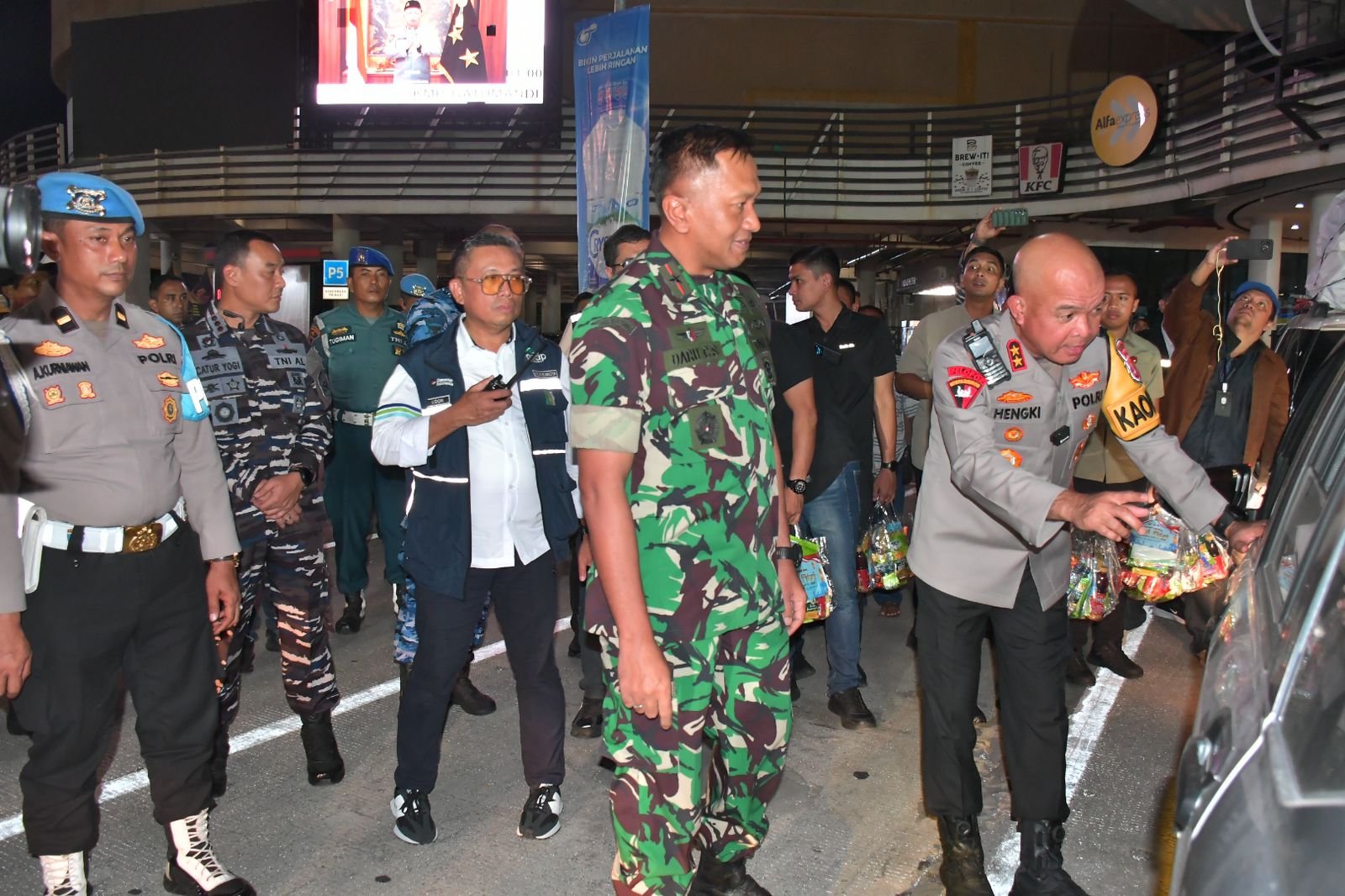 CILEGON, beritaindonesianet-, Danrem 064/Maulana Yusuf Brigjen TNI Daru Cahyadi Soeprapto S.Sos., M.M., mendampingi Gubernur Banten Andra Soni dan Kapolda Banten meninjau langsung situasi arus mudik di kawasan Pelabuhan Merak, Kota Cilegon, Minggu (15/3/2026) dini hari.