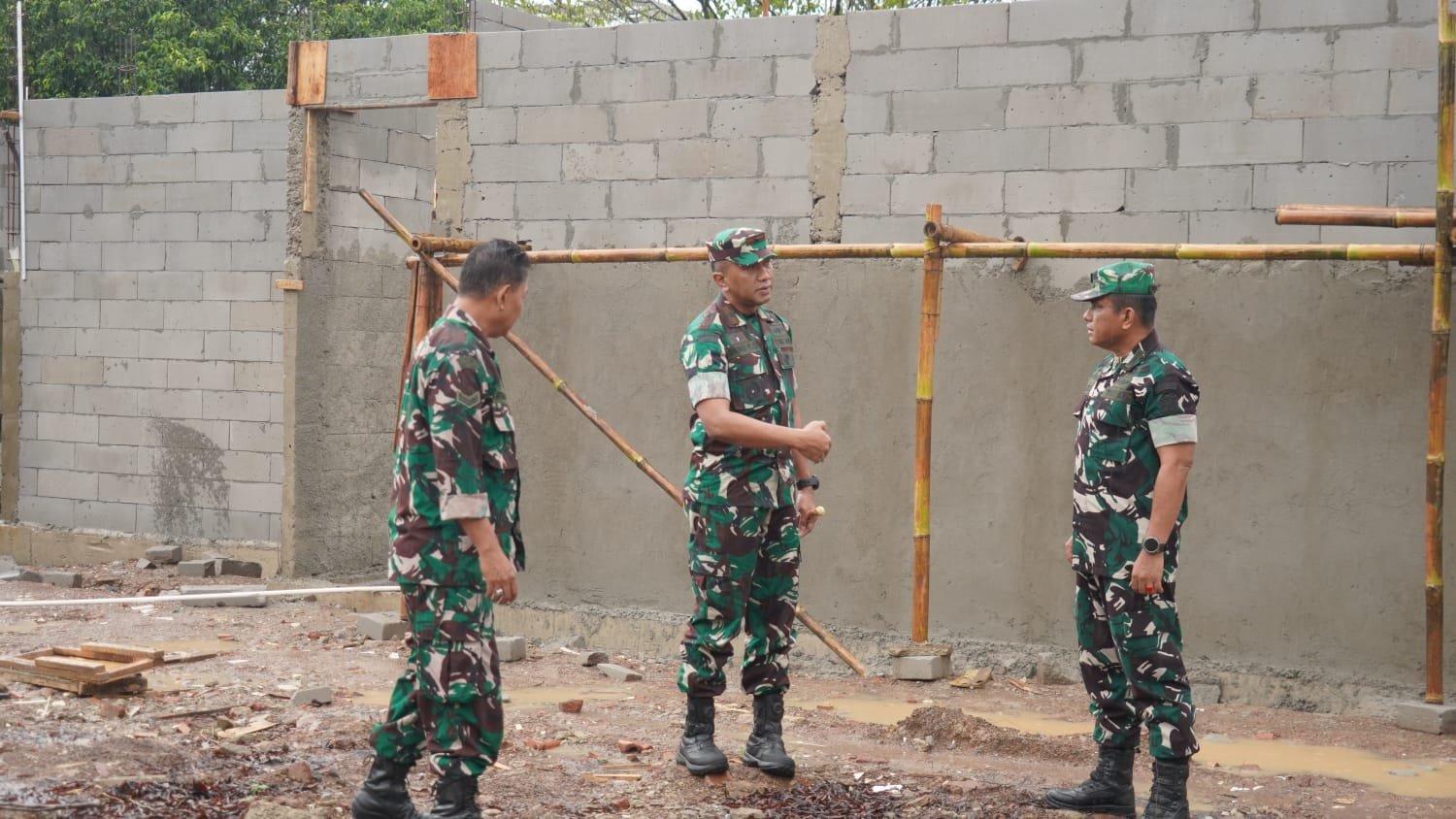 Di lokasi tersebut Danrem melihat perkembangan pembangunan Gerai Koperasi sekaligus memastikan kesiapan material yang sedang dipersiapkan.