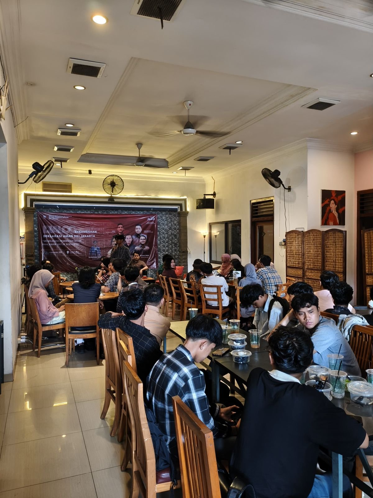 Jakarta, 08-Nov-2025, Aliansi Mahasiswa Nusantara (AMAN) DPW DKI Jakarta mengadakan Forum dialog kebangsaan dan deklarasi yang melibatkan akademisi dan mahasiswa juga dihadiri oleh Agus Muliara selaku ketua umum DPP AMAN ditemani Andre selaku Sekjend DPP AMAN itu membahas kelayakan Presiden ke-2 RI, H. M. Soeharto, untuk dianugerahi gelar Pahlawan Nasional.